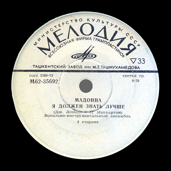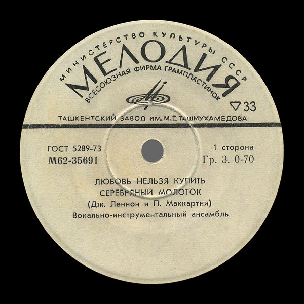 Перечень песен и дополнительную информацию смотрите на главной странице БИТЛЗ. ВОКАЛЬНО-ИНСТРУМЕНТАЛЬНЫЙ АНСАМБЛЬ (миньон) c песнями Любовь нельзя купить / Серебряный молоток // Мадонна / Я должен знать лучше.