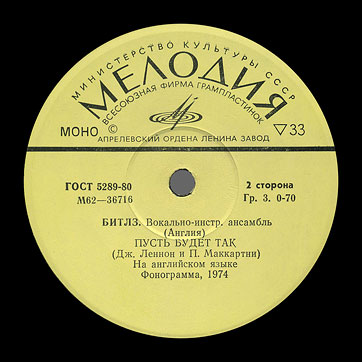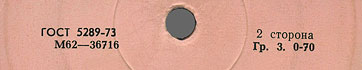 | – | "Всесоюзная студия грамзаписи. Запись 1974 г." – means All-Union Recording Studio. 1974 recording., |