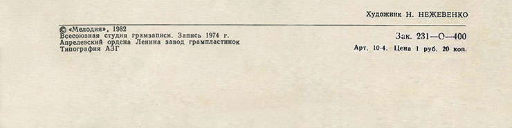 | – | "© «Мелодия», 1982", |