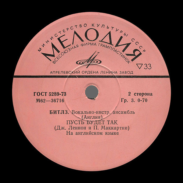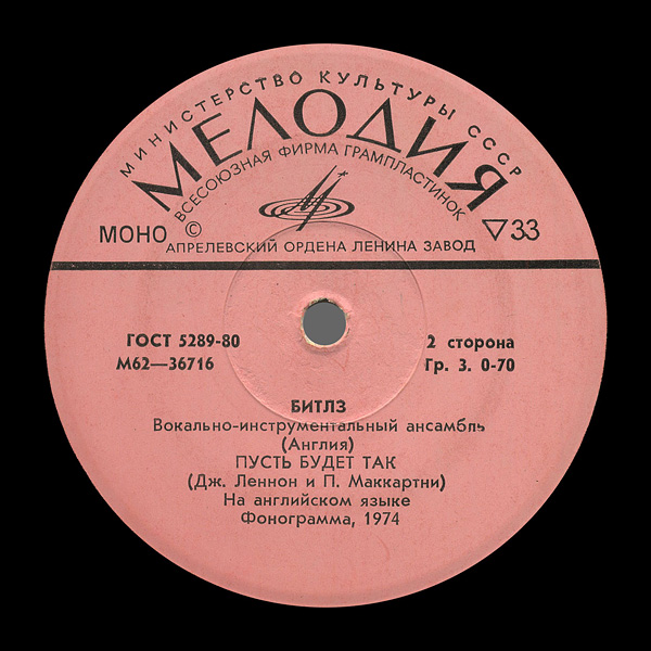 | – | "Апрелевский ордена Ленина завод грампластинок" – means The Order Of Lenin Aprelevka Records Plant, |