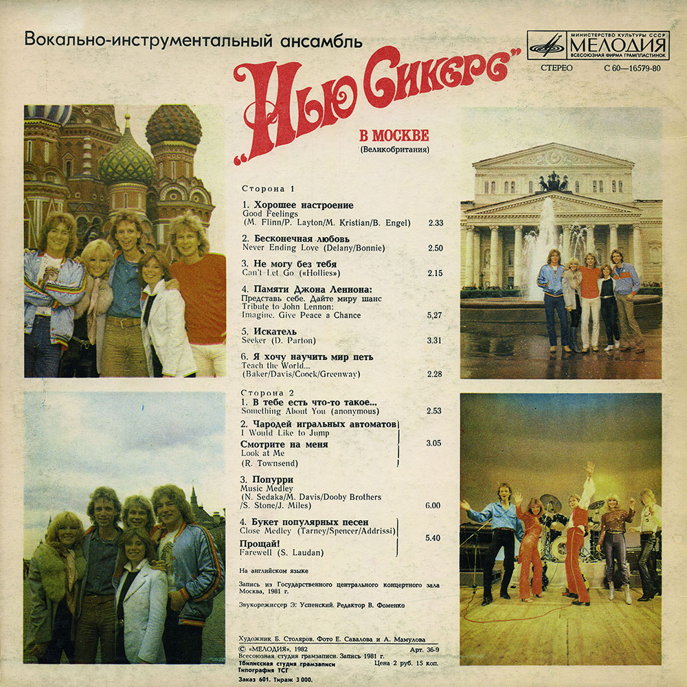 Listed prices – 2 rub. 15 kop. (on the sleeve) and 1-90 (on the label) mean that the LP (supplied with the sleeve) was released and sold until February 1, 1983.