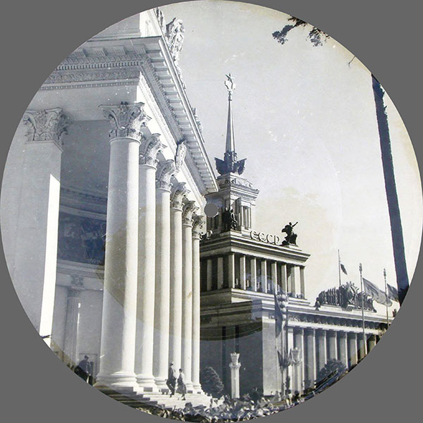 Pic. 2-1. One-sided transparent flexible 6.9" (17.5 cm) photo-record (both sides are shown) with the song I Should Have Known Better by The Beatles. Neither the song's title, nor the artists are listed on the record. Rotation speed is 78 rpm. The photo-record was cut in 1967 or 1968. It is worth noting that the non-working side of the record (the right image) shows the real (non-mirror) look of the city landscape. Рис. 2-1. Односторонняя прозрачная гибкая фотопластинка, диаметром 17,5 см (показаны обе стороны), с песней I Should Have Known Better в исполнении группы "Битлз". Ни название песни, ни исполнитель на пластинке не указаны. Скорость вращения – 78 об/мин. Диаметр пластинки в дюймах – 6,9". Фотопластинка была нарезана в 1967 или 1968 году. Стоит отметить, что реальный (незеркальный) вид городского пейзажа даёт нерабочая сторона пластинки (правое изображение). |