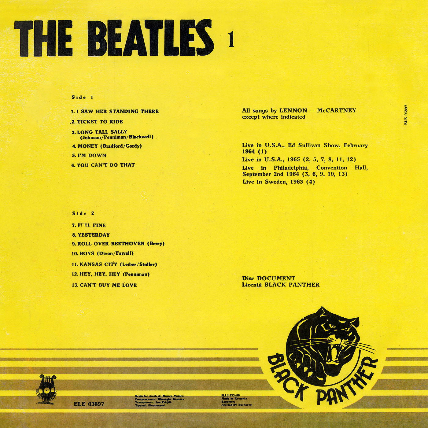Ця платівка є першою частиною бітлівської серії, що складалась з двох дисків. Слідом за нею вийшла друга платівка The Beatles - HIGH VOLTAGE (Electrecord ELE 03898).