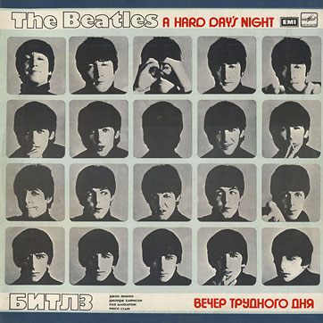 Almost simultaneously with issuing of two single albums A HARD DAY'S NIGHT [see Pic. 1] and A TASTE OF HONEY [see Pic. 2] Melodiya began to release the double album presented here, which contained the same two records. The title for this double album was given according to the title of record 1 – A HARD DAY'S NIGHT (with the corresponding sleeve design). The catalogue number is the same that the single LP A HARD DAY'S NIGHT has, but "(Комплект из 2-х пластинок)" (which means "(2LP-set)") is stated on the back side of the gatefold sleeve [see Pic. 3]. And the price correspondents with two LPs – 7 rubles [see Pic. 4].