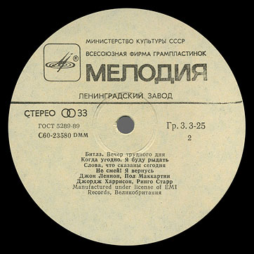 Pic. 22. Record carrying label of side 2 (var. red-6) on both sides (mistake on side 1)