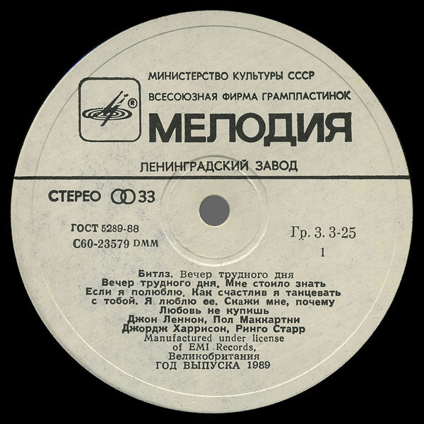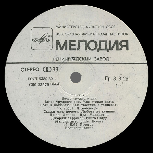 Можно встретить пластинки, на стороне 1 которых ошибочно помещена этикетка стороны 2 [см. Рис. 22].