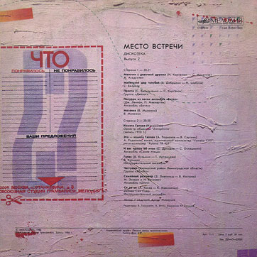 Перечень песен и дополнительную информацию смотрите на главной странице МЕСТО ВСТРЕЧИ. ДИСКОТЕКА. ВЫПУСК 2.