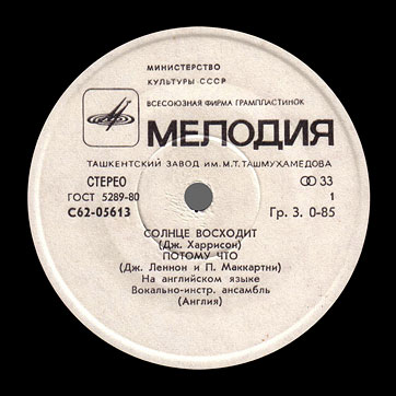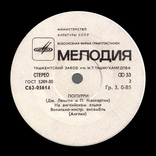 Перечень песен и дополнительную информацию смотрите на главной странице ВОКАЛЬНО-ИНСТРУМЕНТАЛЬНЫЙ АНСАМБЛЬ (АНГЛИЯ) (миньон) c песнями Солнце восходит / Потому что // Попурри.