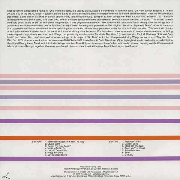 The front side of the sleeve and the labels show the artists as "DENNY LAINE with PAUL McCARTNEY and friends", but the spine – as "DENNY LAINE with PAUL McCARTNEY".
