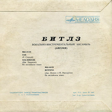 Перечень песен и дополнительную информацию смотрите на главной странице БИТЛЗ. ВОКАЛЬНО-ИНСТРУМЕНТАЛЬНЫЙ АНСАМБЛЬ (АНГЛИЯ) (миньон) c песнями Сад / Что-нибудь // Встреча.