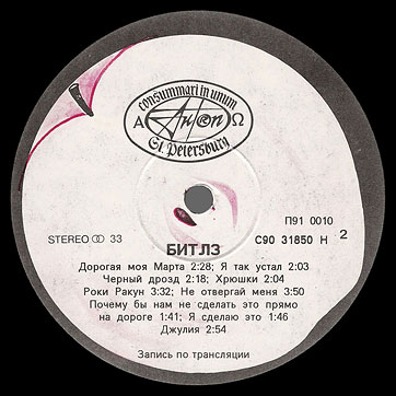Number of label variation for this edition (var. 4) is given on the basis of label variation numbering for 2LP-set. Label of side 2 carries a misprint in catalogue number: П91 0010 stated