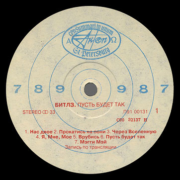 A copy of LP with a wrong label has been found – it carries the label of album THE DARK SIDE OF THE MOON by Pink Floyd on side 1 [see Pic. 6].
