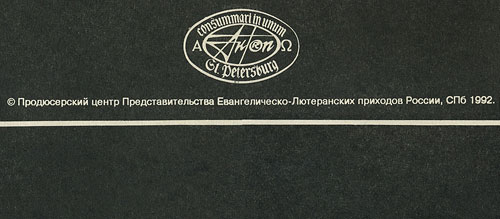 © Продюсерский центр Представительства Евангелическо-Лютеранских приходов России, СПб 1992. (which means© Producer center of the Embassy of Evangelical And Lutheran parishers of Russia, SPb 1992.) |