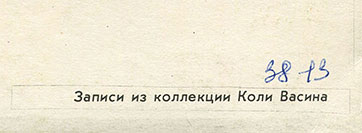 Pic. 7. Fragment of the back side of the sleeve (right lower corner) carrying shop's handwritten price for the album (38 rubles 13 kopecks)