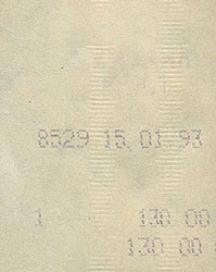 Pic. 8. Till receipt for 130 rubles, dated January 15 1993, for the purchase of the album RUBBER SOUL