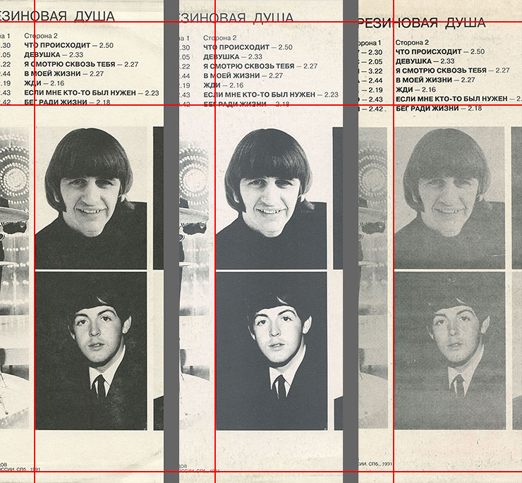 According to the memories of one collector, back in the day he got a copy of LP RUBBER SOUL which appeared to be a mispressed edition: album had correct sleeve and labels but side 1 of record itself (vinyl) carried tracks from other AnTrop's record: BOB MARLEY. THE BEST (catalogue number П91 00209 // П91 00210 (М90 49697 Н // М90 49698 Н)) [see Pic. 16].