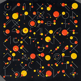Red and yellow labels of Russian LP symbolize red and yellow planets (balls), images of which are repeatedly used in the design of the original edition.