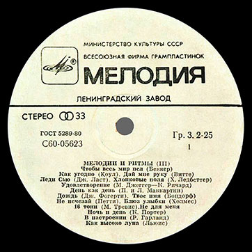 Пластинки с этикетками с ГОСТом 1980 года и ценой 2-25 были выпущены в период между 1 декабря 1983 года и 1988 годом.