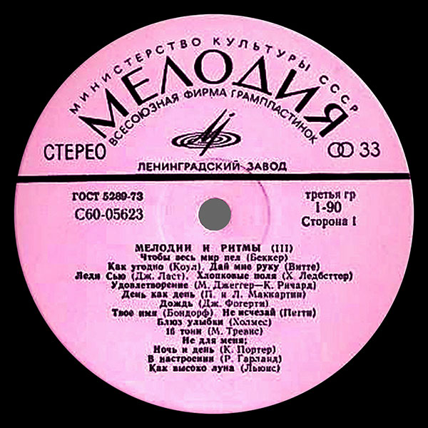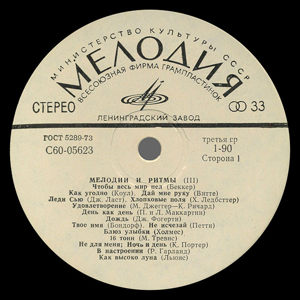 Пластинки с этикетками с ГОСТом 1973 года и ценой 1-90 были выпущены в период между 1975 и 1980 годом.