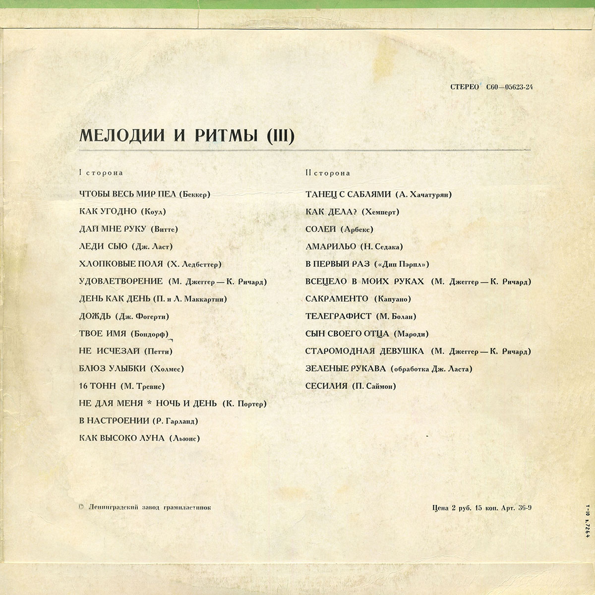 Sleeve (var. 3b), back side (var. A-2) Обложка (вар. 3b), оборотная сторона (вар. A-2) |