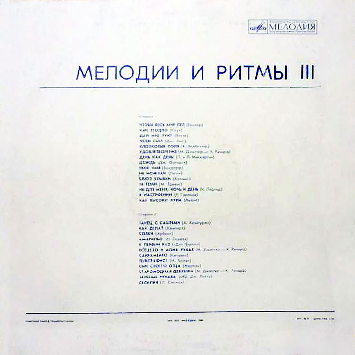 На лицевых сторонах обложек вар. 1a, вар. 1b, вар. 1c название альбома указано как МЕЛОДИИ И РИТМЫ III (без использования скобок).