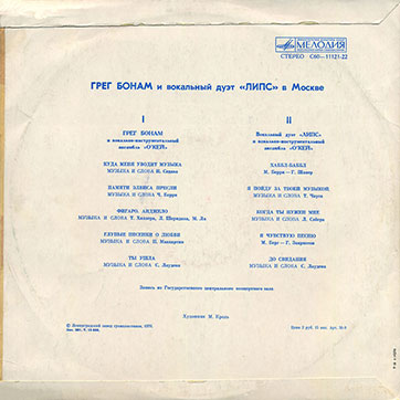 Дополнительную информацию смотрите на главной странице ГРЕГ БОНАМ И ВОКАЛЬНЫЙ ДУЭТ "ЛИПС" (ВЕЛИКОБРИТАНИЯ) В МОСКВЕ. ЗАПИСЬ ИЗ ГОСУДАРСТВЕННОГО ЦЕНТРАЛЬНОГО КОНЦЕРТНОГО ЗАЛА.