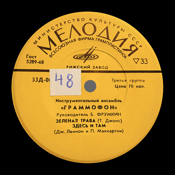 To date no individual picture or title sleeve for this 7" EP by Riga Plant has been found. All found records were supplied with various standard (generic) Melodiya's art sleeves.