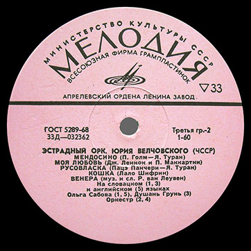 Дополнительную информацию смотрите на главной странице ЭСТРАДНЫЙ ОРКЕСТР ОЛДО ЗЕМАНА (ЧССР) // ЭСТРАДНЫЙ ОРКЕСТР ЮРИЯ ВЕЛЧОВСКОГО (ЧССР) (моно).