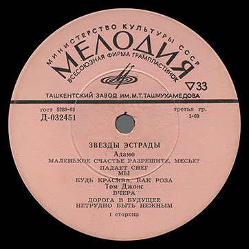 Only one variation of sleeve by Tashkent Plant has been found to date – it's a title sleeve (var. 1). But you should keep in mind that a lot of copies were released and sold in various standard (generic) Melodiya's art sleeves.