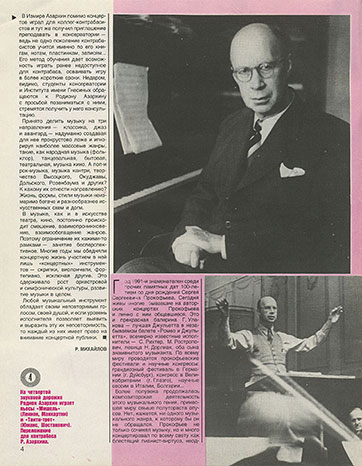 Also THE BEATLES, SHOSTAKOVICH AND CONTRABASS article (telling about this musician) by R. Mihaylov is published on pages 3 and 4 of the magazine in MASTERS OF THE SOVIET