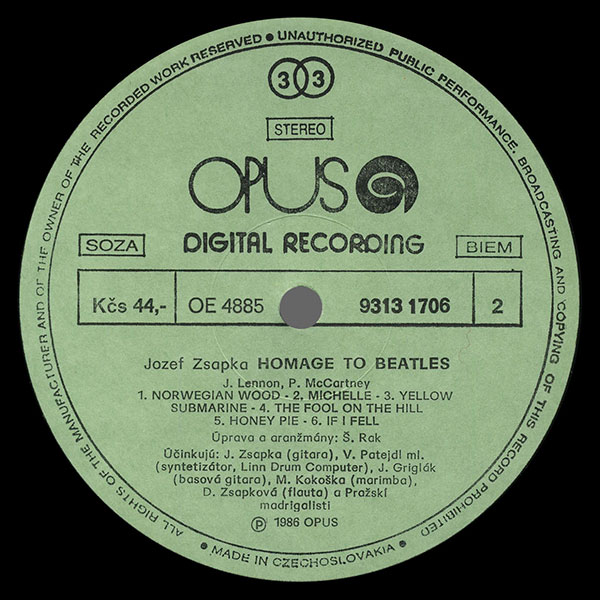 Цей альбом повністю складається із інструментальних кавер-версій пісень "Битлз". Виконавці: Йозеф Цапка за участю інших музикантів-інструменталістів та ансамблю Празьких мадригалістів (усі з Чехословаччини). Більшість композицій – із вокалізом.