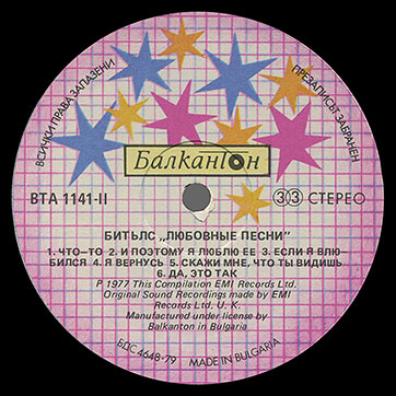 На русскоязычных этикетках название группы указано точно так же, как и на болгарских – БИТЪЛС или БИТЬЛС (у более поздних изданий). На самом деле, на русском языке название группы следовало бы писать как БИТЛЗ.