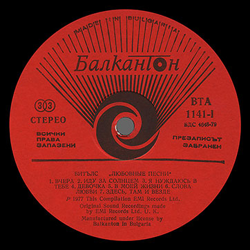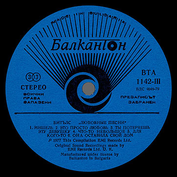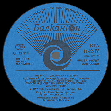 На всех вариантах разворотных обложек фирмы "Балкантон" в левой нижней части оборотной стороны указан логотип фирмы "Parlophone" и упоминается "EMI Records Ltd." [Рис. 3].