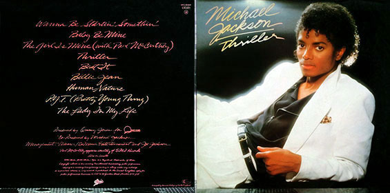 Рис. 1. Оригинал британского издания альбома THRILLER компании "Epic" – разворотная обложка, оборотная и лицевая стороны