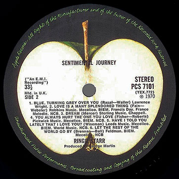 Arranged by Les Reed. *The oldest song on this release, dating from 1919, and originally by George J. Trinkaus and his band. But Ringo and his family would probably have been more familiar with the 1944 Dick Haymes version. |
