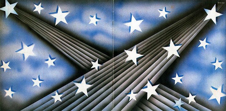 Non-laminated gatefold cover. "Sgt. Pepper" style cover art by Tim Bruckner. The album was packaged with a 24-page 29,5 x 29,5 cm (11,6 x 11,6 inch) booklet featuring album credits, song lyrics and Klaus Voormann lithographs depicting each of the songs. The booklet carries on a joke from George Harrison's Living In The Material World LP by providing information on the Jim Keltner Fan Club. Fans are advised to send a stamped undressed envelope to the address for Capitol Records in Hollywood.